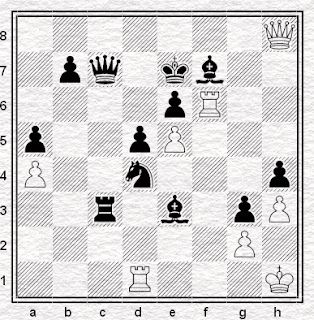28...Th7! (com vantagem decisiva) 29.Td1 Dh8 30.Rf2 Cc2 31.Ce2 Be4 32.g5 Rc7 33.Dg4 Cxd4 34.Cxd4 Bc5 35.Rg3 Bxd4 36.Ch4