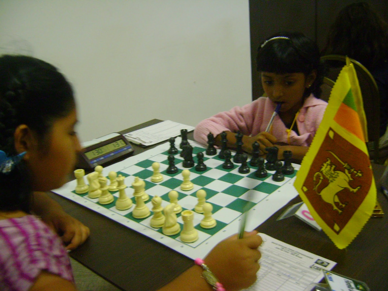 Sub 7 feminino. mesa 1: Fiorella Contreras (Perú) leva as brancas ante Ehsa Mishela Pallie (Sri Lanka)